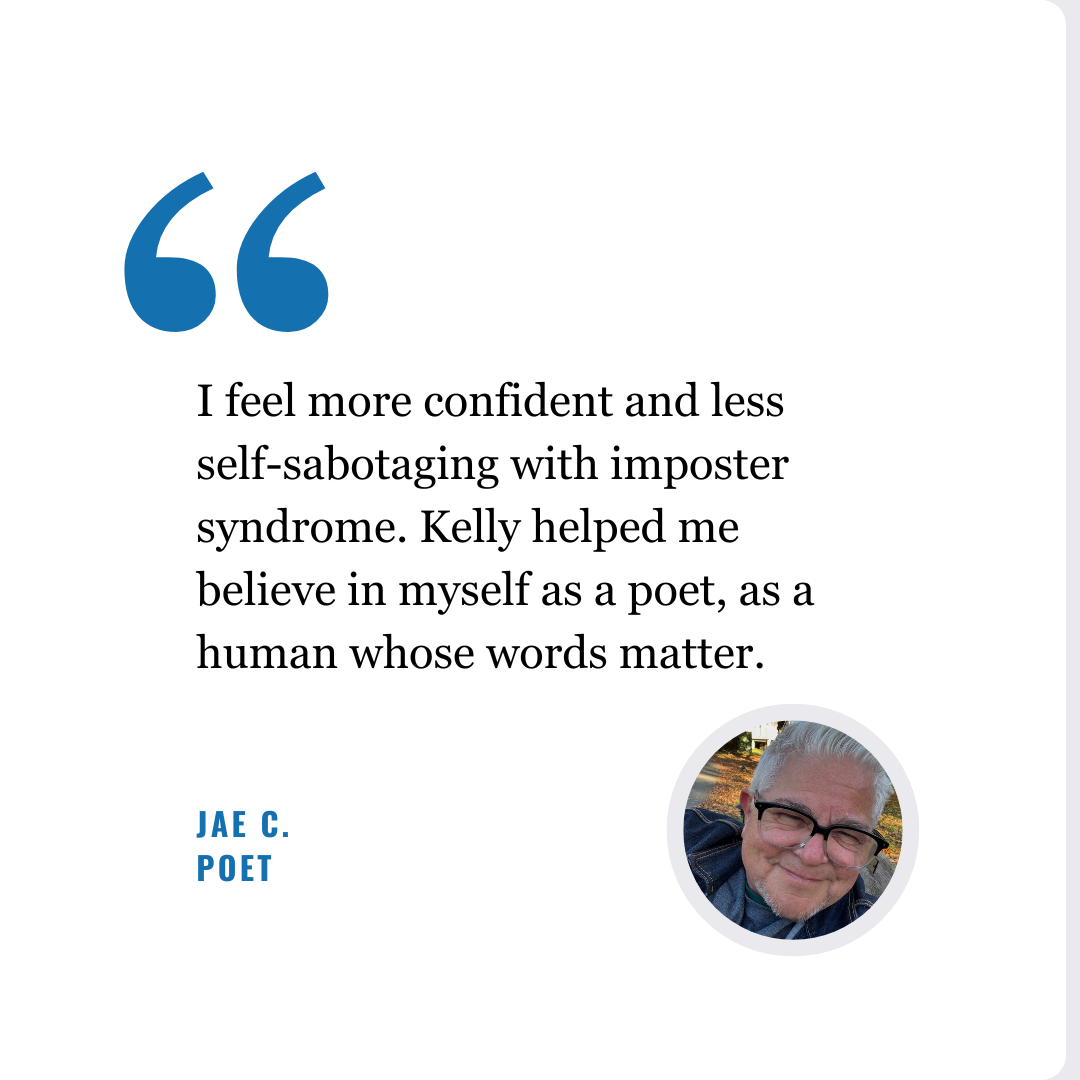 As a poetry coach who has helped hundreds of clients achieve their writing goals, whether establishing creative habits, publishing in top literary journals, compiling a manuscript, or being accepted into their dream MFA program.
